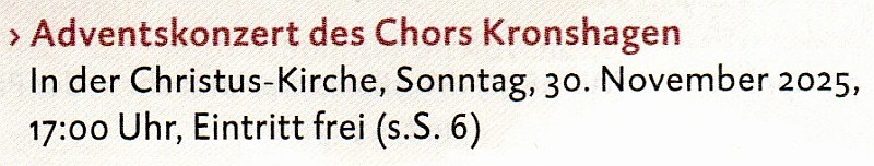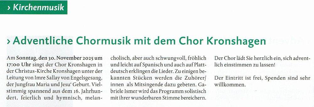 Adventskonzerte am 30. November u. 6. Dezember 2025